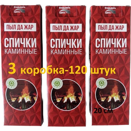 Каминные спички наполнением 40шт, длинной 20 см, 3 коробка