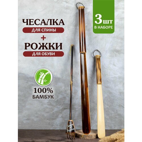 Рожок для обуви деревянный чесалка для спины, 3 шт