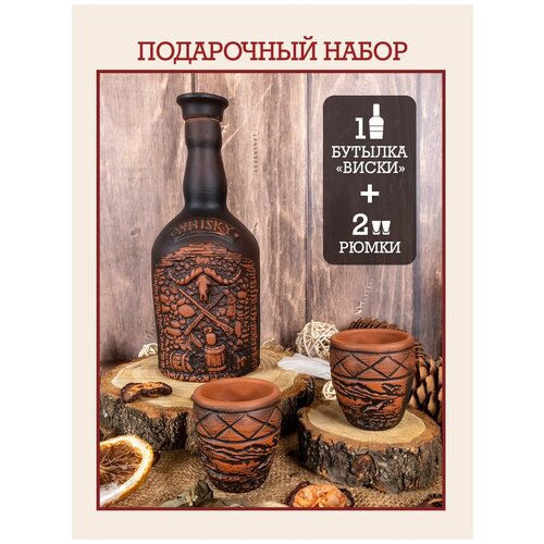 Набор графин с рюмками для алкогольных напитков, для виски, керамический, глиняная посуда для дома и кухни, набор бутылка и 2 стопки