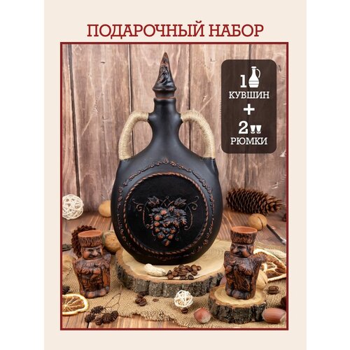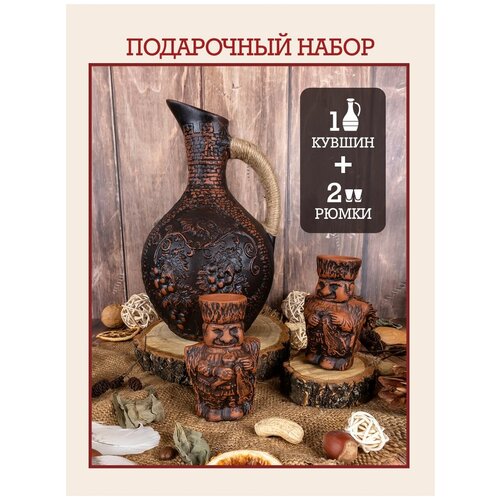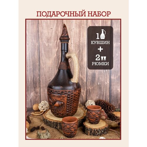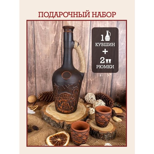 Кувшин для вина глиняный декантер рафин для вина 1 литр рюмки для коньяка