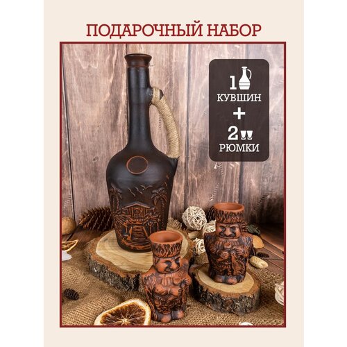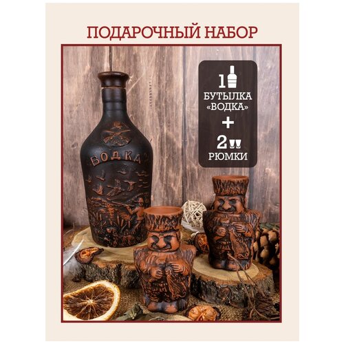 Набор графин с рюмками для алкогольных напитков, для водки, керамический, глиняная посуда для дома и кухни, набор бутылка и 2 рюмки