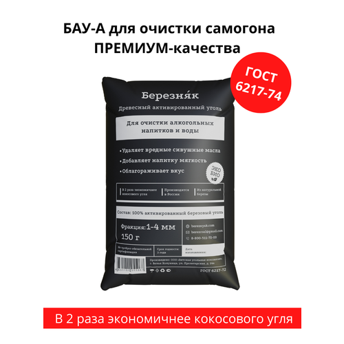 Уголь активированный Березняк БАУ-А для очистки самогона березовый 150 грамм 600010741668