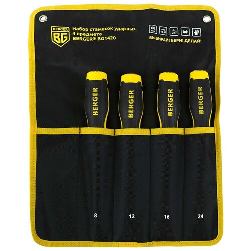 Набор стамесок для обработки древесины, 4 шт 8, 12, 16, 24 мм , BERGER BG1420