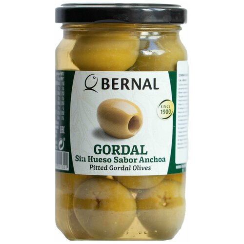 Оливки Bernal гордаль крупные в анчоуссном рассоле, без косточки, Премиум, Испания, 300г