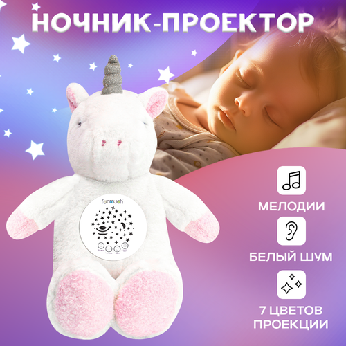 Детский ночник проектор с пультом ДУ единорог (мягкая игрушка)