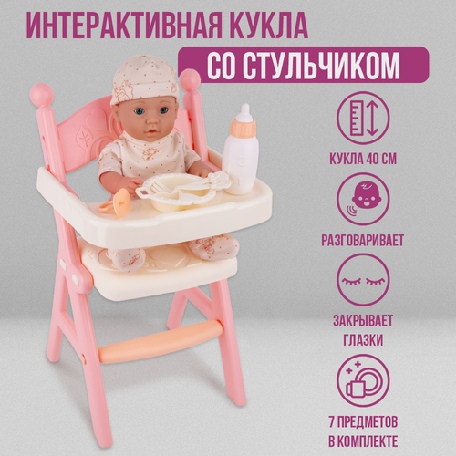 Кукла пупс говорящая со стульчиком для кормления, 40 см