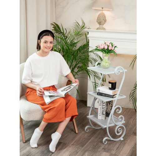 Этажерка напольная, металлическая, кованая белая Beurs