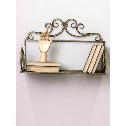 Полка настенная прямая кованая для кухни для книг, для комнаты, прихожей, детской BEURS Бронза