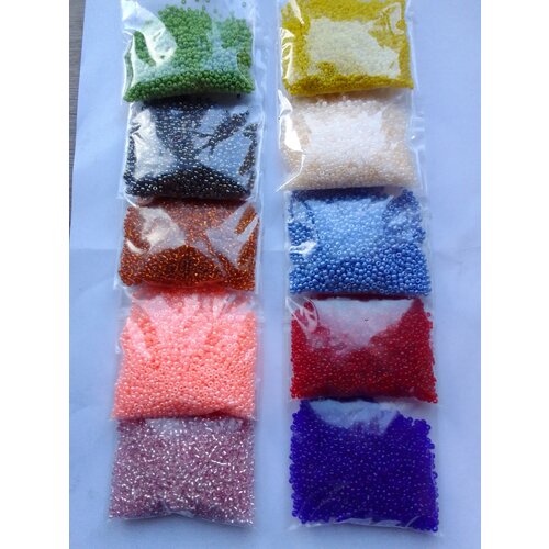 Набор бисера "N12" из 10 ярких цветов общим весом 30 грамм и 300 грамм всего
