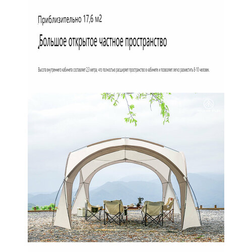 Шатер Садовый Беседка, Бежево-серебристый Гель 4,2*4,2*2,3 Купольный Навес(Отдельная палатка)