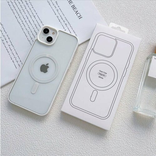 Силиконовый прозрачный чехол с MagSafe для Iphone 15 / Айфон 15 (White/Белый)