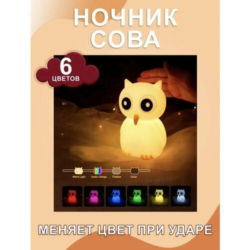 Детский ночник светильник Сова, силиконовая ночная лампа