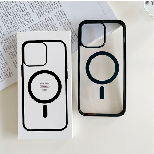 Силиконовый прозрачный чехол с функцией магнитного крепления и беспроводной зарядкой для Iphone 15 pro max / Айфон 15 про макс (Black/Черный)