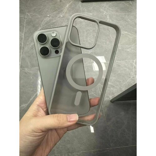 Силиконовый прозрачный чехол с MagSafe для Iphone 15 pro max / Айфон 15 про макс (Natural Titanium/Натуральный)
