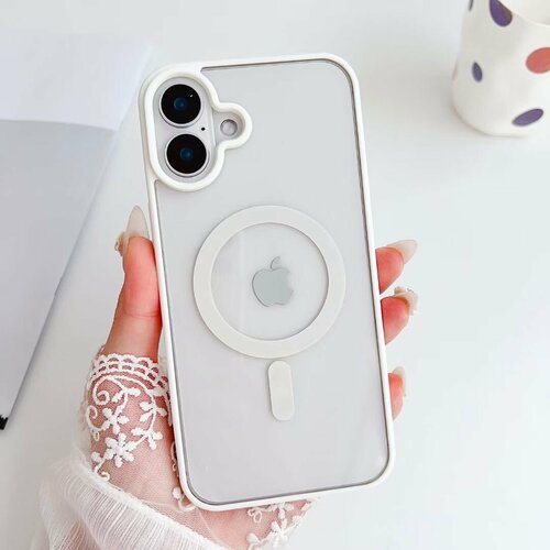 Силиконовый прозрачный чехол с MagSafe для Iphone 16 / Айфон 16 (White/Белый)