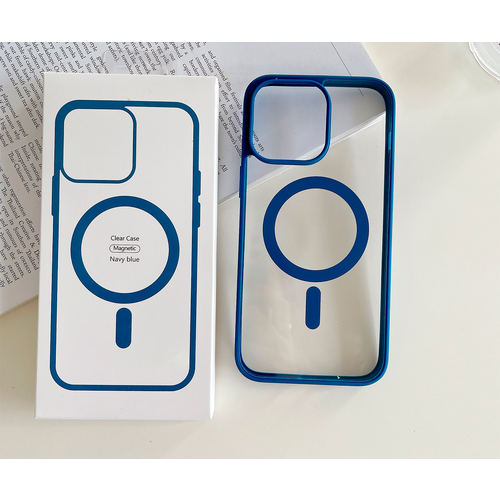 Силиконовый прозрачный чехол с функцией магнитного крепления и беспроводной зарядкой для Iphone 15 pro max / Айфон 15 про макс (Navy Blue/Темно синий)