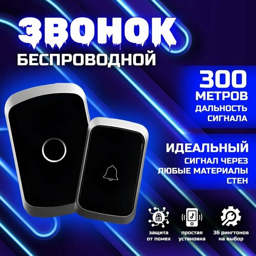 Звонок дверной беспроводной электрический уличный от сети для дома и дачи влагозащищенный на дверь, 110 Дб, IP44, дальность до 150м, 60 мелодий, батарея в комплекте