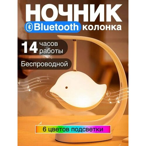 Ночник детский музыкальный "Поющая птичка"/ Светильник светодиодный с Bluetooth для детей/ Ночник-колонка с белым шумом/ Освещение в детскую комнату