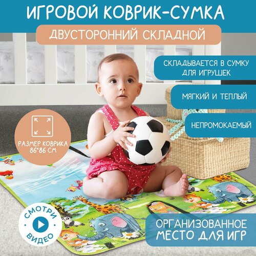 Развивающий коврик сумка детский для ползания складной, Интерактивный термоковрик Трансформер для хранения игрушек, Мягкий игровой манеж моющийся