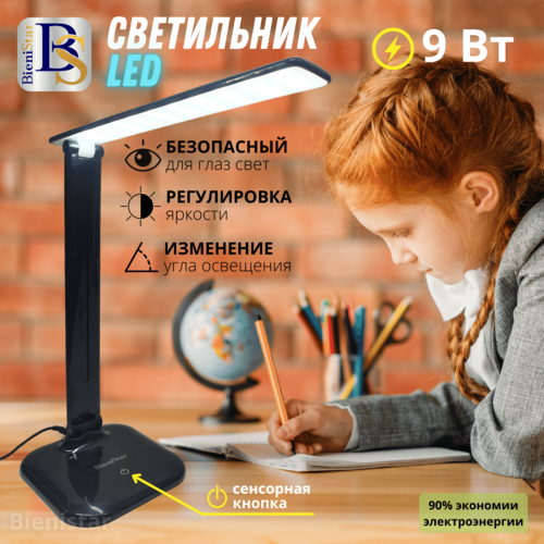 Лампа настольная светодиодная сенсорная, светильник черный LED ночник школьника для дома, офиса, маникюра Bienistar