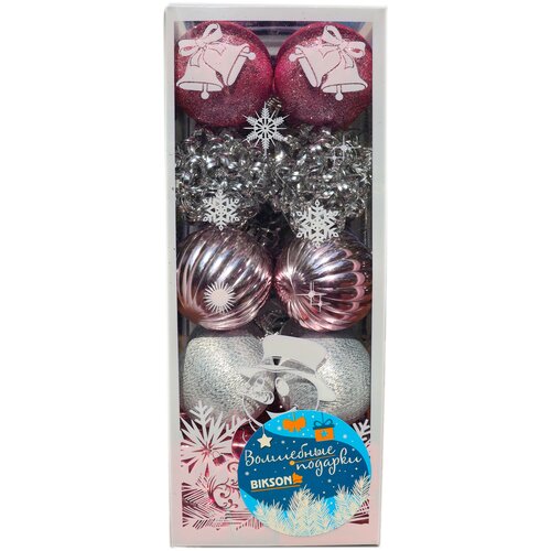 Набор елочных шаров Bikson Волшебные подарки DC11925, серебристый/розовый, 5 см, 20 шт.