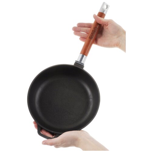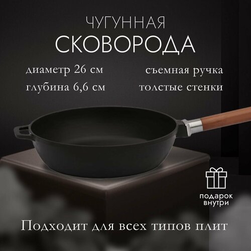 Сковорода чугунная глубокая (сотейник), жаровня, сковородка для индукционной плиты 26 см со съемной ручкой Olmax, для любых плит газ электро индукция