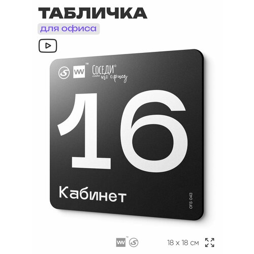 Табличка информационная "Кабинет №16" 18х18 см, пластиковая, SilverPlane x Айдентика Технолоджи
