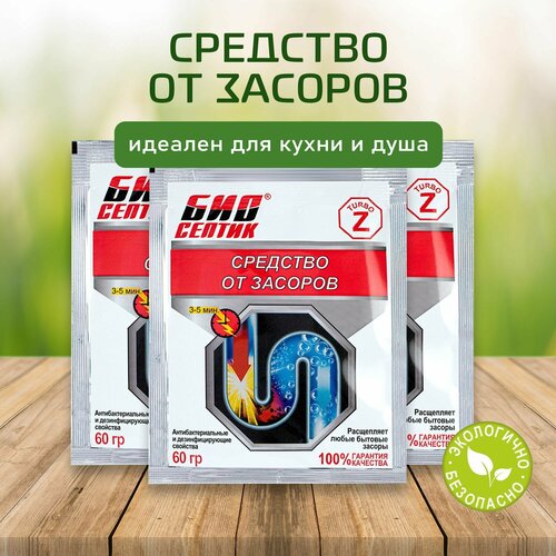 Средство для прочистки сифонов канализационных труб моек раковин ванн Биосептик-Z turbo, 3 шт. по 60 г