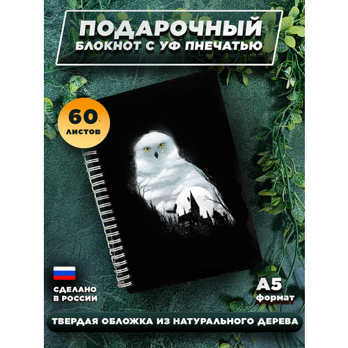Блокнот в деревянном переплете для записей на 60 листов, А5 " Гарри Поттер Сова Букля "