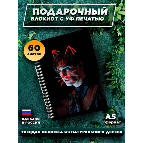 Блокнот в деревянном переплете для записей на 60 листов, А5 " Гарри Поттер Harry Potter Рон Гермиона "