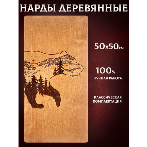 Нарды большие Медведь 50х50 деревянные ручная работа подарок