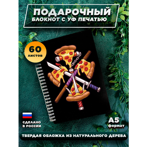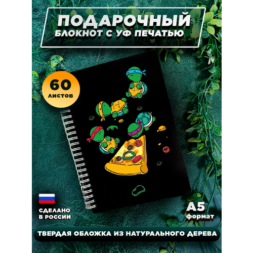 Блокнот для записей, в твердом переплете, из дерева на 60 листов, А5 " Черепашки-ниндзя Пицца "