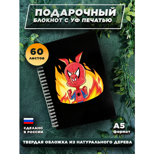 Блокнот для записей, в твердом переплете, из дерева на 60 листов, А5 " Свин Паук Spider Man "