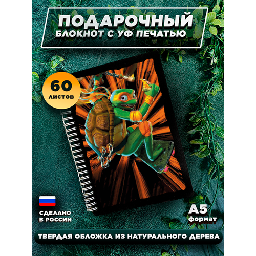 Блокнот для записей, в твердом переплете, из дерева на 60 листов, А5 " Черепашки-ниндзя Леонардо "