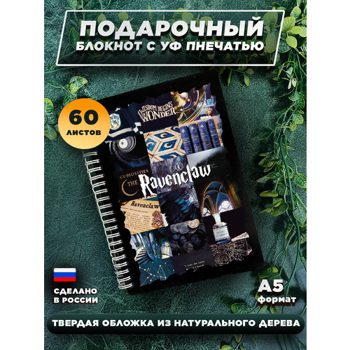 Блокнот в деревянном переплете для записей на 60 листов, А5 " Гарри Поттер Ravenclaw Когтевран "