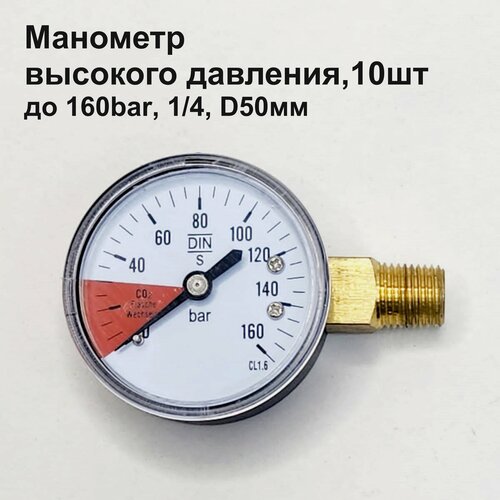 Манометр радиального подключения 1/4", измерение до 160 бар, D50мм, 10шт