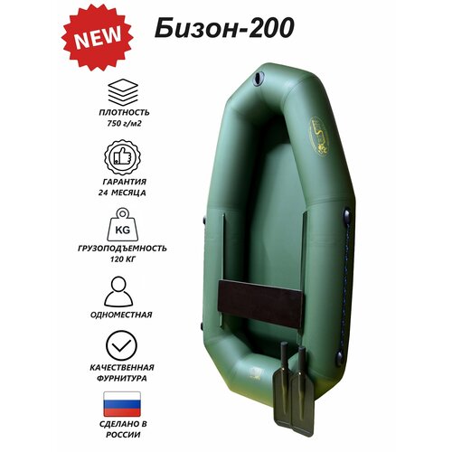Надувная одноместная пвх лодка Бизон-200 (зеленый) с гребками