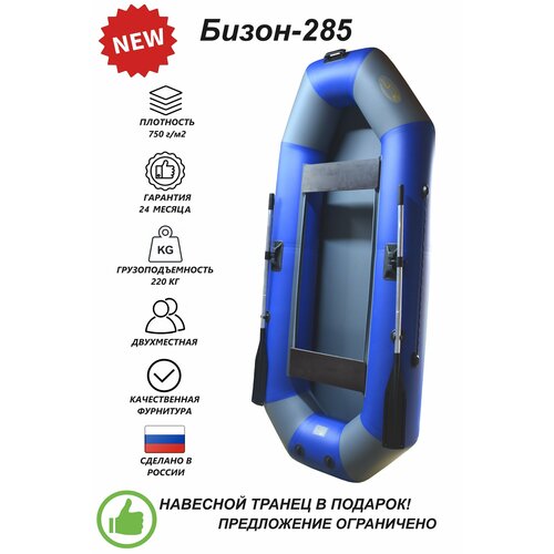 Надувная двухместная пвх лодка Бизон-285 (синий/серый)