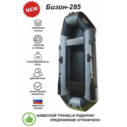 Надувная двухместная пвх лодка Бизон-285 (серый/черный)
