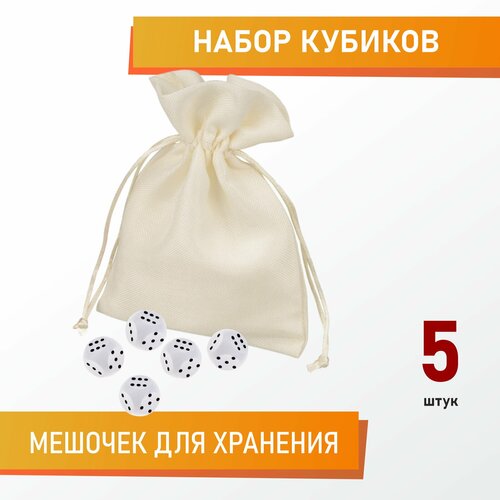 Кубики игральные (кости) d6, синие, 5 шт в подарочном мешке