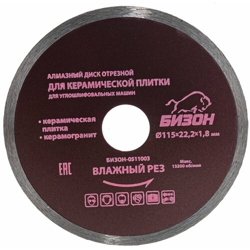 Диск алмазный отрезной по керамической плитке (115х22.2 мм) бизон 0511003