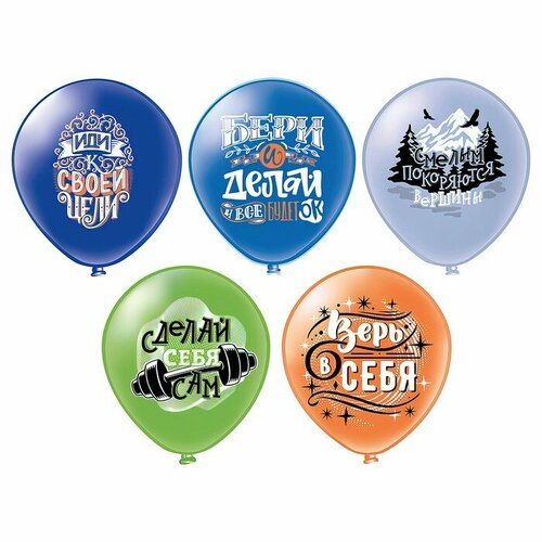 БиКей Шар латексный 12" «Мужская мотивация!», 5 дизайнов, 1-сторонний, набор 25 шт, микс