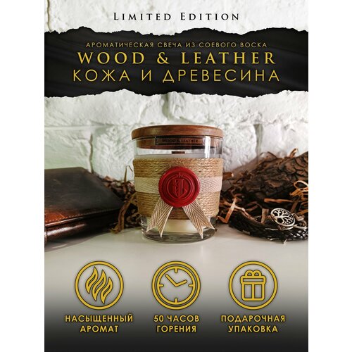 Интерьерная ароматическая свеча "Кожа и древесина" Signed Craft Candle