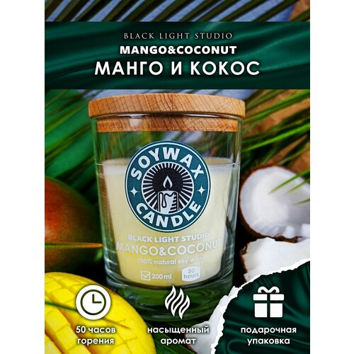 Ароматическая свеча Soy Wax Candle "Манго и кокос" из соевого воска с деревянным фитилем