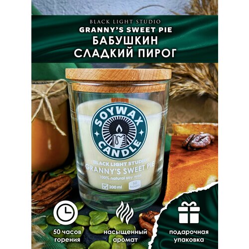 Ароматическая свеча Soy Wax Candle "Бабушкин сладкий пирог" из соевого воска с деревянным фитилем