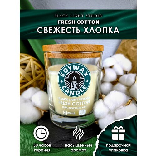 Ароматическая свеча Soy Wax Candle "Свежесть хлопка" из соевого воска с деревянным фитилем
