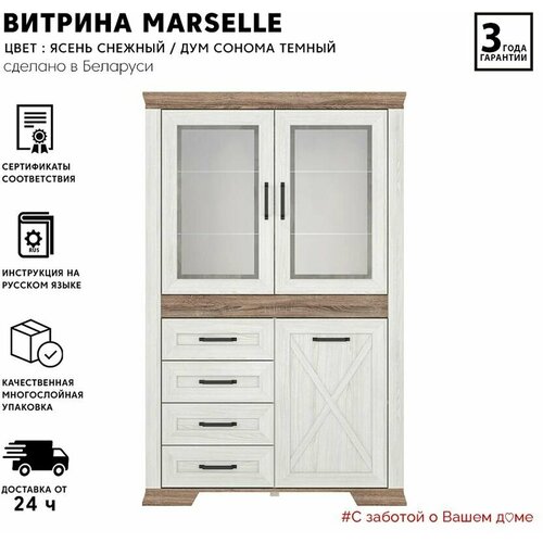Шкаф-витрина для гостиной БРВ-мебель Марсель REG2W1D4S, (ШхГхВ): 116.5х45.5х182.5 см, ясень снежный/дуб сонома темный