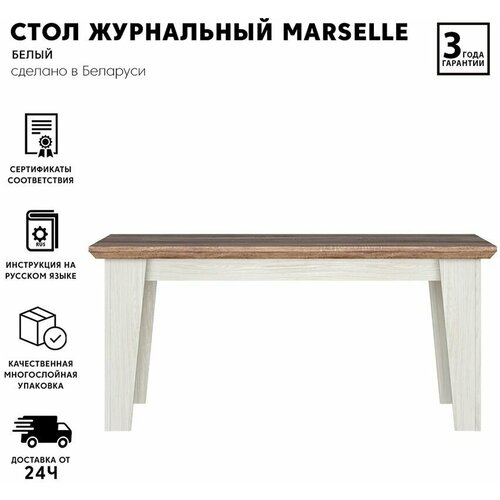 Столик журнальный БРВ-мебель Кентаки LAW, ДхШ: 130 х 65 см, белый