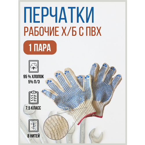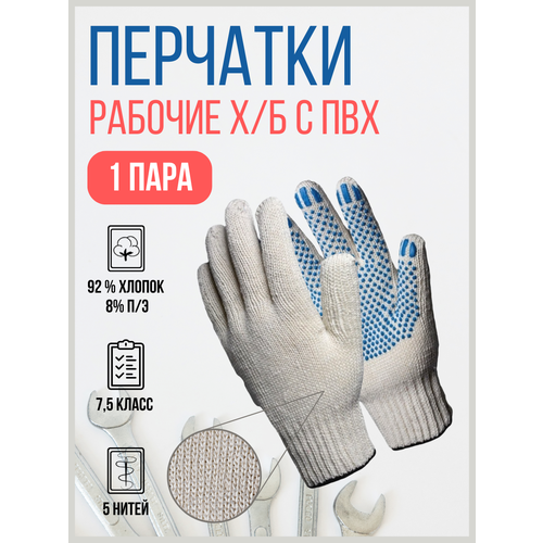 Благодатный мир Перчатки 5 нитей Профи 7,5 класс Цвет Белый, Тип ПВХ Точка, 20 шт