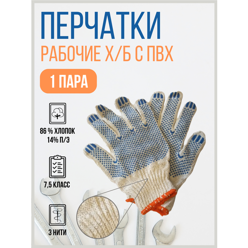 Благодатный мир Перчатки 5 нитей Профи 7,5 класс Цвет Белый, Тип ПВХ Точка, 10 шт